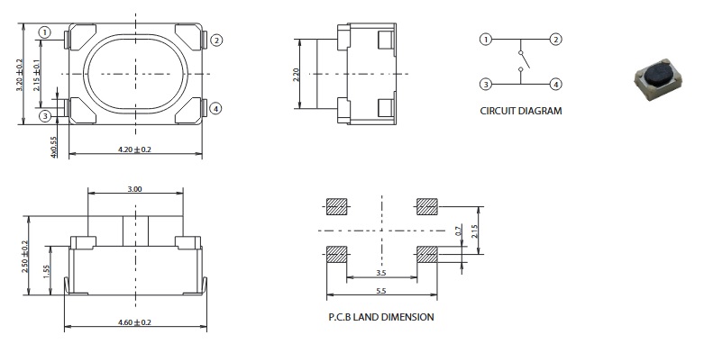 Veľkosť: 4,2 x 3,2 x 2,4 mm.