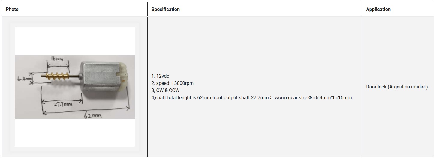 4,shaft total lenght is 62 mm.front output shaft 27,7.mm 5, worm gear size:Φ =6.4mm*L=16mm