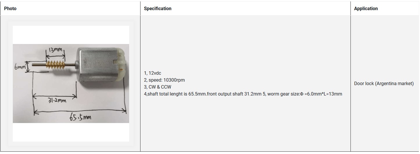 4,shaft total lenght is 65.5mm.front output shaft 31.2mm 5, worm gear size:Φ =6.0mm*L=13mm